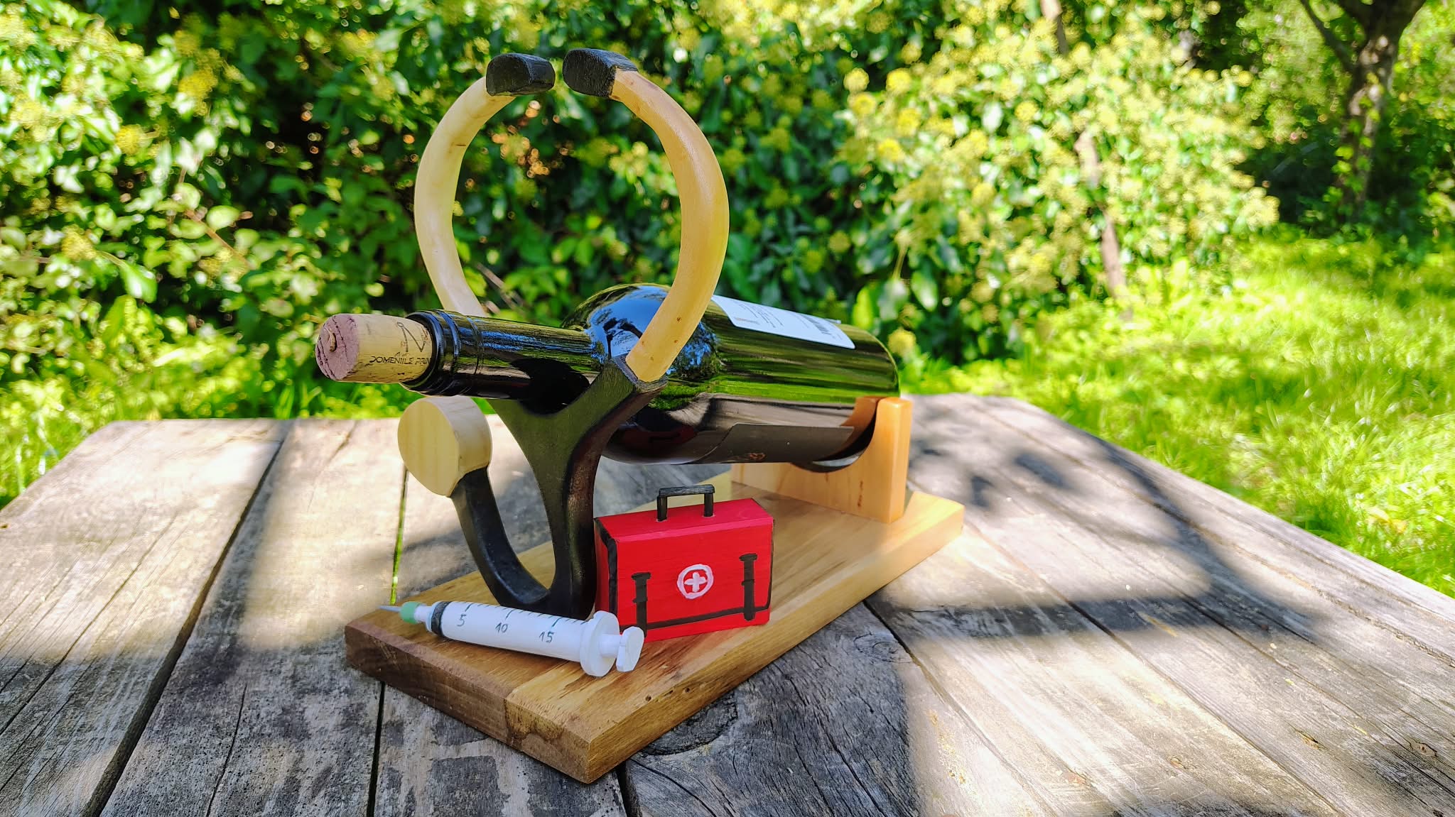 Un cadou special creat pentru cei care vindecă zilnic – acest suport de vin personalizat pentru doctori îmbină pasiunea pentru medicină cu măiestria lemnului lucrat manual. Designul ingenios, inspirat de stetoscop și trusa medicală, susține sticla de vin într-un mod elegant și stabil. Fiecare detaliu este realizat cu grijă, transformând suportul într-un obiect decorativ unic, perfect pentru birou, cabinet sau acasă. Un mod original de a spune mulțumesc unui medic dedicat.